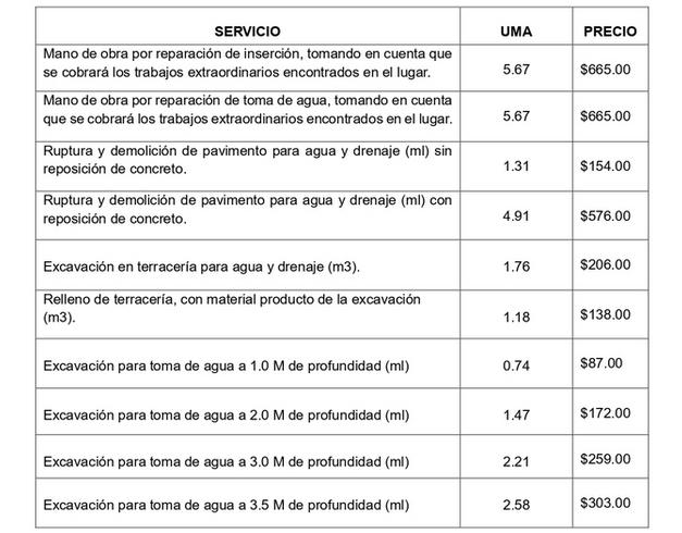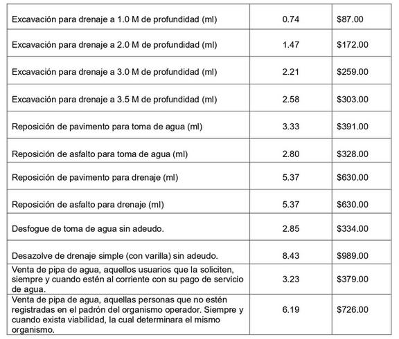 TARIFA: A.-COSTO DEL CONTRATO DOMESTICO Y MIXTO $5,390.00 (MÁS EL COSTO DE LA INSTALACIÓN DE AGUA Y/O DRENAJE)